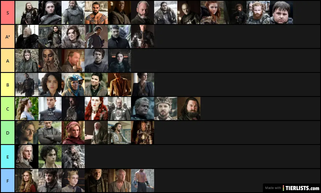CREATE YOUR OWN Game of Thrones characters RANKING